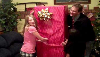 Недавно удочеренная девочка получает подарок от новой семьи, из-за которого она плачет