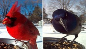Женщина кормит птиц и фотографирует их крупным планом. Захватывающее зрелище