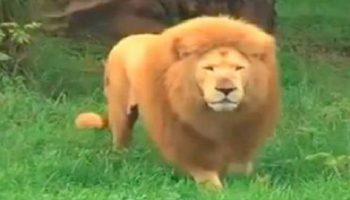 Она бросает футбольный мяч Льву. Смотрите каким невероятным образом Лев откликается