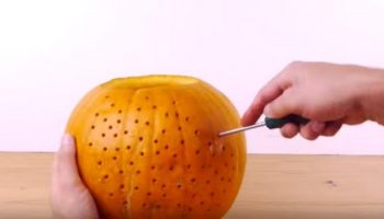 Он тычет отверткой в тыкву для приготовления к страшному Диско-Балу!