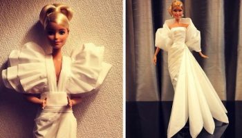 Человек создает свадебные платья для своих кукол Барби, используя туалетную бумагу вместо ткани