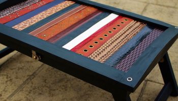 Я использовал кожаные ремни для украшения этого маленького переносного столика