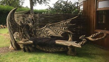Эта невероятная сказочная скамья была вырезана с помощью бензопилы