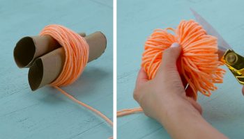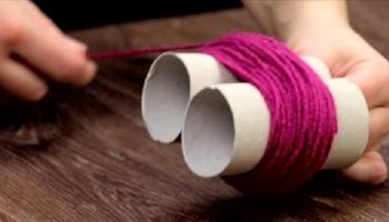 Возьмите пряжу и два картонных рулона туалетной бумаги. Каждая семья нуждается в том, что вы можете сделать