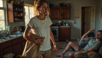 «Забыл позвонить? Ты забыл позвонить, когда я в одиночку тащила на себе этот мешок!» — воскликнула жена, пораженная эгоизмом мужа среди хаоса дома.