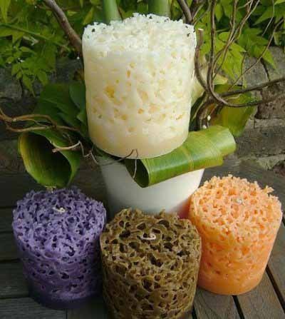 Аккуратно удалите остатки свечной массы, подрежьте фитилек – ваша ажурная свеча готова!