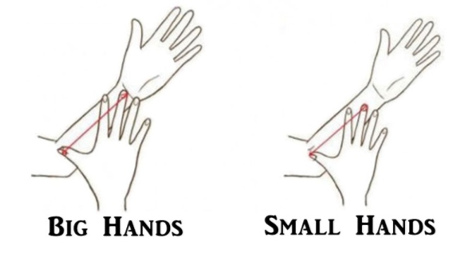 Чтобы определить размер ваших рук, согните руку под углом в 45 градусов и поместите большой палец в сторону локтя. Затем протяните руку и посмотрите, доходит ли средний палец до запястья. Если это получилось, у вас- большие руки. Теперь вы можете узнать, что это говорит о вашей личности.