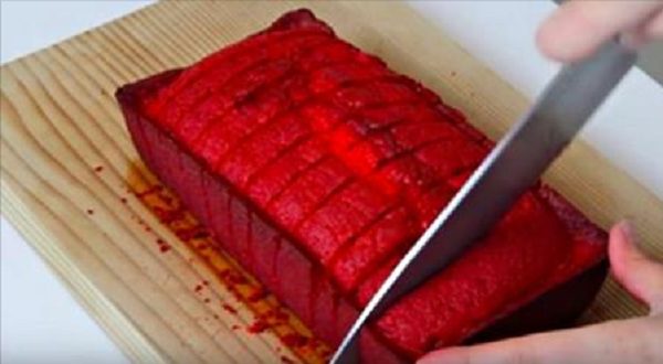 Трюк выпечки: два различных пирожных, один шоколадный торт и один ванильный торт, окрашенный в красный цвет. Не стесняйтесь красить ваши сердца в любой цвет, который вы хотите; розовый, фиолетовый, синий, или любой другой цвет . Далее вы будете использовать вырезы, чтобы получить маленькие сердца.
