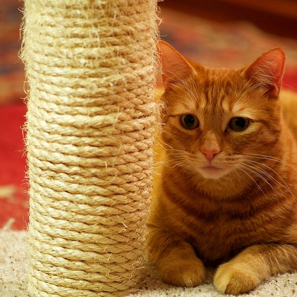 Приучать питомца к когтеточке нужно сразу – если у вас в доме котенок, достаточно поднести малыша к новой когтеточке и слегка надавить ему на фаланги, чтобы выпустил когти. Еще можно на высоте повесить игрушку, к которой кот будет забираться по столбику, попутно оттачивая когти. Главное – чтобы развлечения котенка не были подвешены на леске или синтетической веревке – котенок еще плохо координирует движения и может в них запутаться.