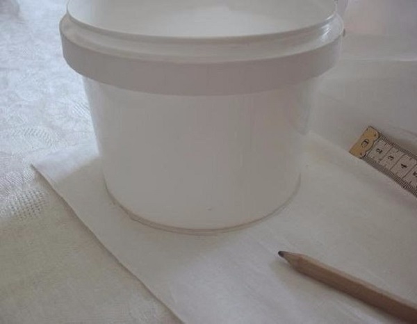 4. Вы должны будете сшить маленький мешочек из белой ткани, который будет украшать корзину изнутри.