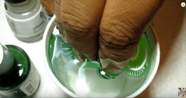 Облачаться в зелёный цвет в День Святого Патрика стало проще, благодаря этому простому стилю из морских мраморных ногтей от My Simple Pleasures. Все, что вам нужно — зеленый и белый лак для ногтей и стакан воды!