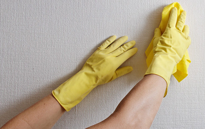 1. С пятнами от жира на виниловых обоях бороться проще всего. Их текстура не позволит загрязнению глубоко впитаться и, в большинстве случаев, его достаточно просто протереть влажной тряпочкой. Помните: пятно необходимо обрабатывать от краев к центру, чтобы не оставлять лишних разводов от воды. Если пятно на виниловых обоях более глубокое, замените тряпочку жесткой щеткой.