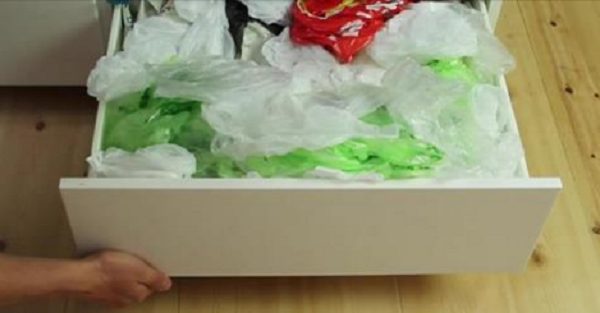 Вот идеальный, легкий трюк, чтобы держать пластиковые пакеты упорядоченными и доступными, когда Вы на самом деле хотите их использовать повторно: