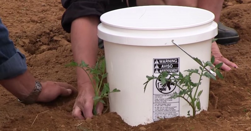 Для защиты растений от ветра, сделайте небольшой каркас. Вы можете сделать его самостоятельно с помощью проволочного ограждения или старого пластикового ведра. Середина такой «клетки» с отверстиями в дне и по бокам. Ведро немного прикопано, а затем заполненоо водой, удобрением и навозом, медленно питает окружающую почву, так как она просачивается через отверстия.