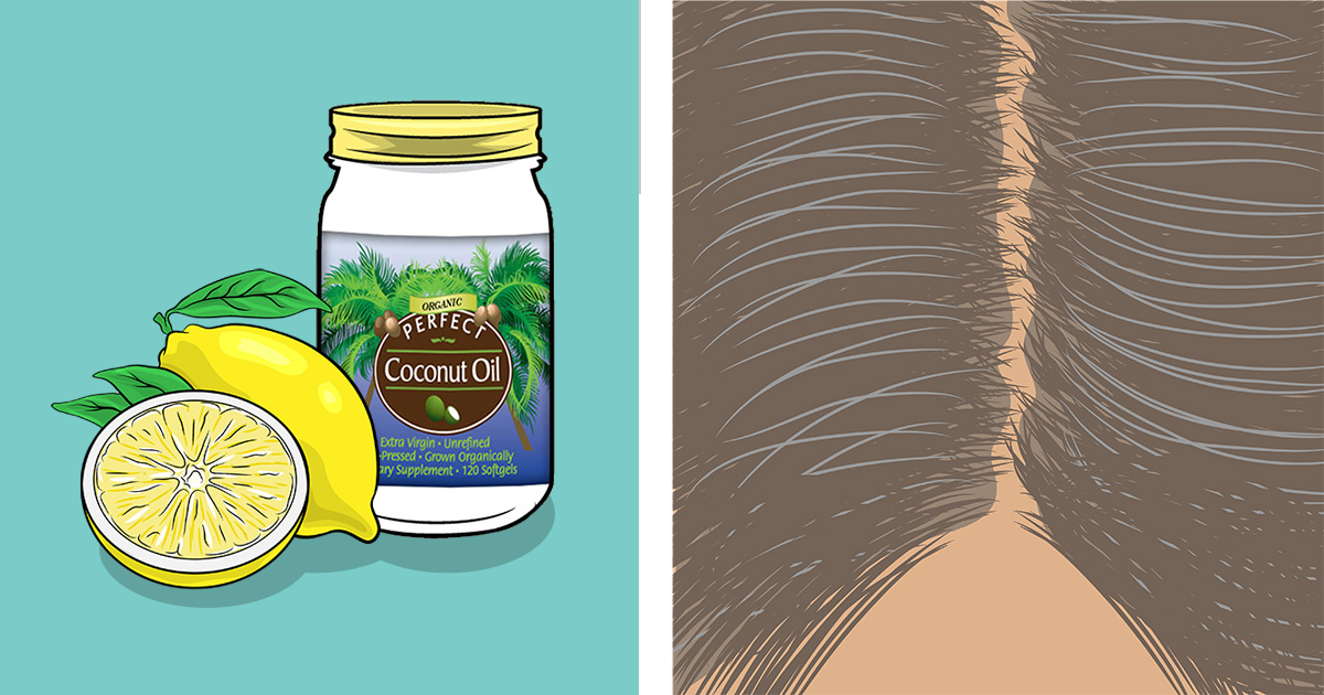 Смешайте ингредиенты в миске, затем вмассируйте смесь в волосы и кожу головы до тех пор, пока все не будет полностью покрыто. Подержите час, промойте с мягким шампунем. Повторяйте этот процесс один или два раза в неделю. Кокосовое масло помогает улучшить состояние волос, состояние вашей кожи головы, способствует росту волос, укрепляет ваши пряди, обрабатывает поврежденные волосы, а также устраняет оттенки серого цвета. Оно также помогает бороться с перхотью.
