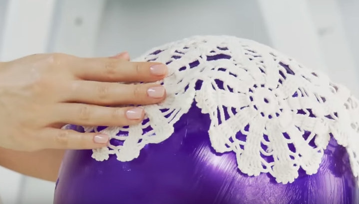 Поместите большую салфетку на верхней части шара и убедитесь, что она лежит совершенно плоско, чтобы избежать пузырей.