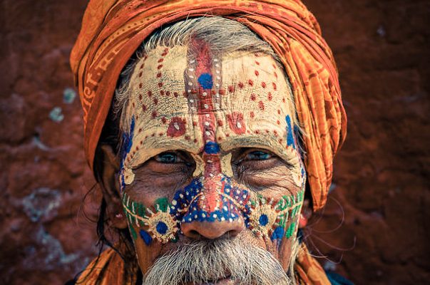 Разрисованные лица бывают разных форм и цветовых сочетаний, эти люди посвятили себя символике божества.