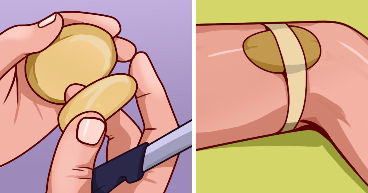 1. Картофель от укуса паука. Вырезать большой кусок сырого картофеля, а затем использовать медицинскую ленту , чтобы приклеить картофель на укус. Заменить ломтик картофеля на свежий каждые 12 часов. Через одну неделю укус должен зажить.