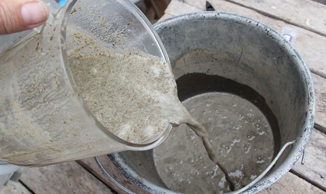 Поместите смесь в ведро и выберите стену, где вы можете создать свой художественный шедевр. Северная сторона стен, больше затененная, лучше всего подходит для этого.