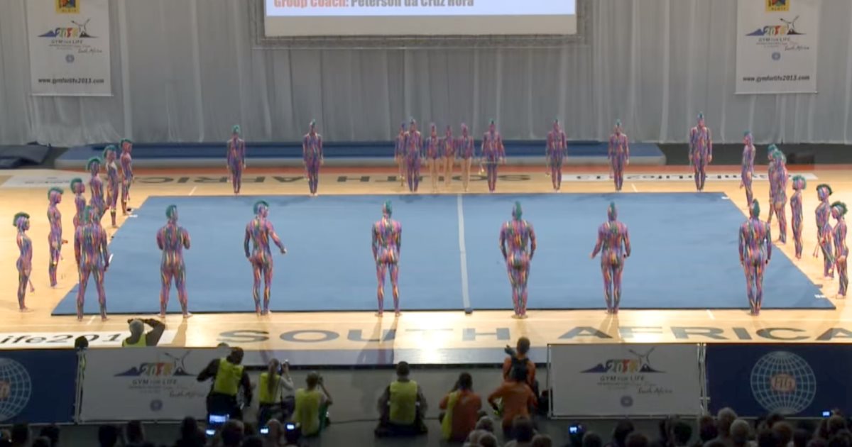 Сначала они выстроились вокруг мата, после, образуют рисунок сетки. Они добавили элементы неожиданности, которые заставят вас гадать, что будет дальше. Один момент, и сидящие на полу вдруг парят под потолком. Это было настолько непредсказуемо! Под музыку Цирка дю Солей и Марк Мансина, гимнасты заставили зрителей наслаждаться увиденным.