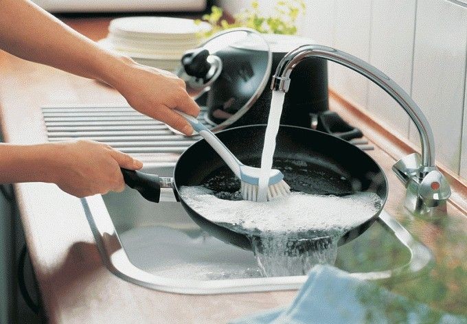 После этого берем жесткую губку, хорошенько трем и смываем всё!