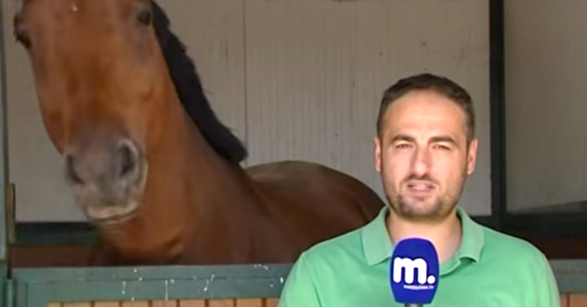 Лошади невероятно умные животные, и этот игривый жеребец по имени Фрэнки не является исключением. Он должен знать, что репортер говорит о нем, поскольку каждый раз, когда он начинает свой рассказ, Фрэнки подталкивает и щекочет репортера своей большой головой! Увидев это — невозможно не улыбнуться.