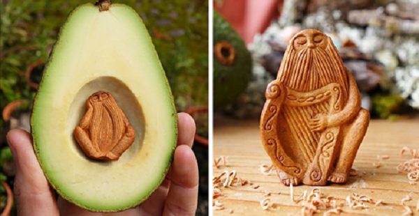 Яна Кэмпбелл съела однажды авокадо и ее поразила красота косточки, объекта, который большинство людей выбрасывает. После нескольких недель размышлений, девушку побудила мысль вырезать из косточки фигурку, сделать эдакое произведение искусства.