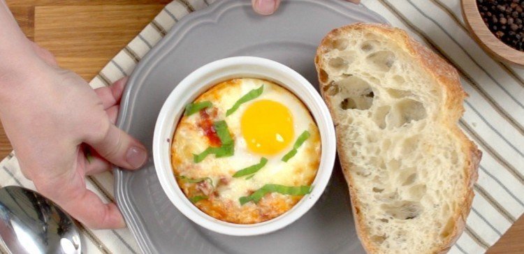 - Положите листик базилика и можете наслаждаться завтраком.