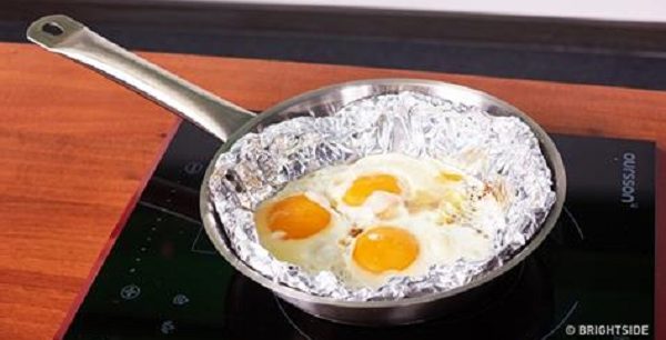 Чтобы защитить пищу от подгорания на сковороде, положите слой фольги на дно. Вы можете готовить без масла.
