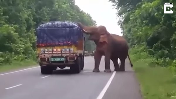 Водитель на грузовике с картофелем недавно ехал по дороге в Восточной Индии, когда появился дикий слон, которые решил перекусить. Через несколько секунд хобот животного уже был внутри грузовика и хватал картошку …