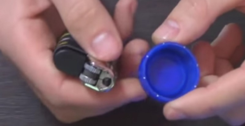 Нагрейте верхнюю сторону колпачка, используя зажигалку. Убедитесь, что пластик не потемнел.