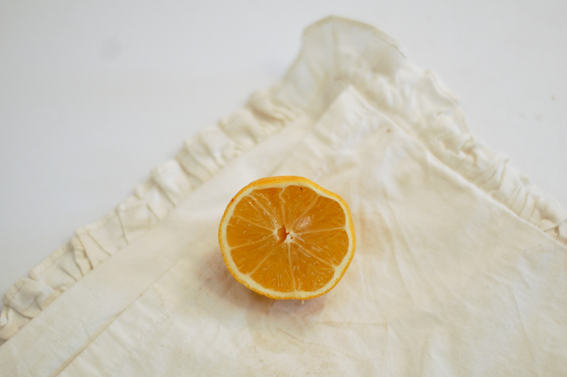 - Нанесите лимонный сок на пятно.