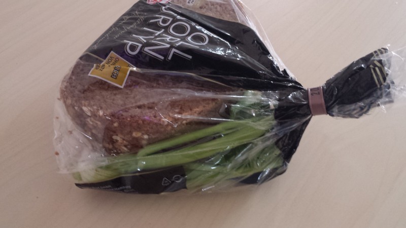 Положите в полиэтиленовый пакет затвердевший хлеб и пару стеблей сельдерея, убедитесь, что пакет плотно закрыт.
