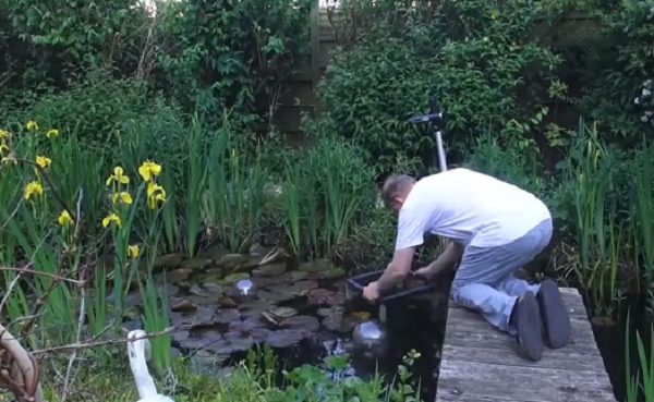 Рыбы плавают под водой! Но один человек решил построить перевернутый аквариум и дать рыбам возможность увидеть поверхность своего пруда. Рыбы быстро освоились и, кажется, начали наслаждаться своим новым небоскребом.