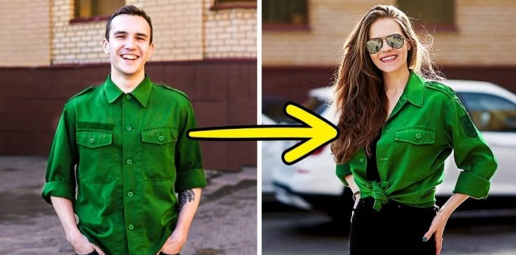 После тяжелого дня в офисе мои коллеги по работе и я решили провести вечер вместе. Я решила надеть что-то классное и универсальное. Эльмира быстро нашла интересную рубашку цвета хаки и посоветовала мне завязать ее в узел на талии. Наряду с очками и узкими брюками образ стал полным. Я чувствовал себя действительно привлекательно.