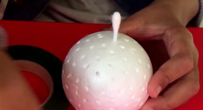 2. Теперь возьмите деревянную палочку и создайте много отверстий в шаре из пены, оставив между ними пространство.
