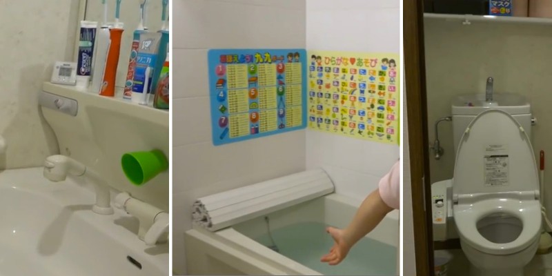 В Японии стены используются для отделения раковины, ванной и туалета друг от друга. В то время как один человек чистит зубы, другой может принять ванну, и третий человек может посидеть на унитазе.