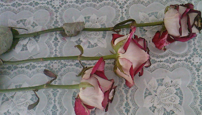 Розы стояли долго в вазе, видно были они срезаны совсем недавно. По прошествии времени — начали увядать. Очень мне было жалко, что праздник для души шёл к завершению. Вот как всегда! Умные мысли пришли опосля! Решила я из нарезанных черенков вырастить розы — шансов было очень мало на успех! Больно уж долго простояли мои цветы в вазе.