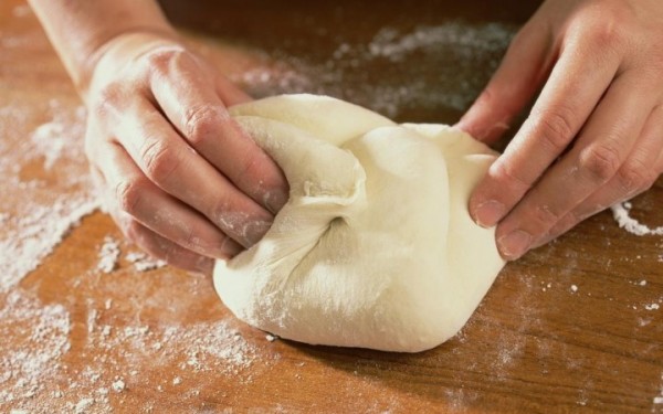 7. Когда вы обминаете тесто руки должны быть сухие.