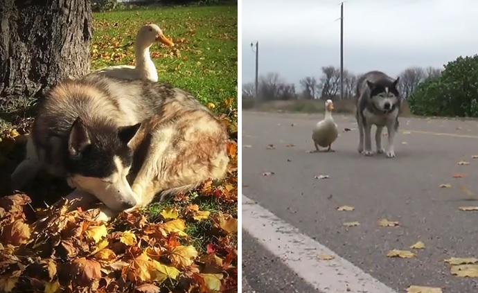 Собаке Максу было 5 лет, когда Патрик и Кирстен Райли из Строута, штат Миннесота, приняли его. Он быстро подружился с Сашей, другим Хаски, который на тот момент уже жил в семье. Однако Саша вскоре скончалась и в сердце Макса поселилось одиночество. Эта пустота вскоре стала заполнена уткой.