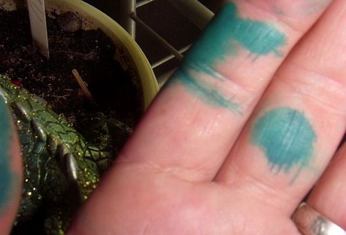 Внимание: ни в коем случае не пробуйте удалить зеленые пятна с помощью химических бытовых пятновыводителей! В противном случае вы повредите свою кожу.