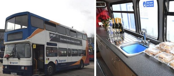 Жители Портсмута Сэмми Баркрофт и Джоанн Винес, лидеры благотворительной группы The Rucksack Project , решили присоединиться к волне организаций, превративших заброшенные автомобили в мобильные приюты для бездомных. Им удалось забрать двухэтажный автобус «Стойка», предназначенный для лома, и срочно потребовать помощи в его ремонте в святилище на колесах. Восемь месяцев, 8000 долларов и около 70 — 80 человек, автобус был оснащен 12 двухъярусными кроватями, гостиной и полностью оборудованной мини-кухней. Многие из реставраторов потратили свое время, сделав окончательную работу стоимостью более 33 тыс. Долларов.
