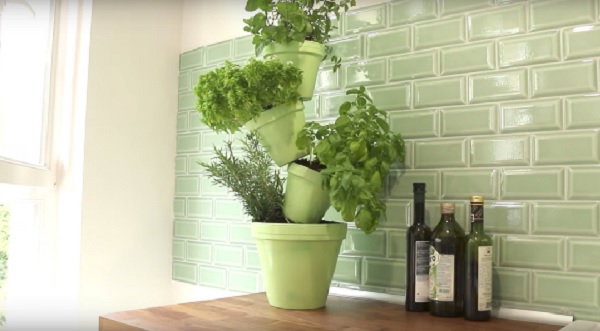 Посадите в каждый горшок разные травы, и вот — вас все есть! Вертикальный травяной сад с богатым выбором приправ для кухни.