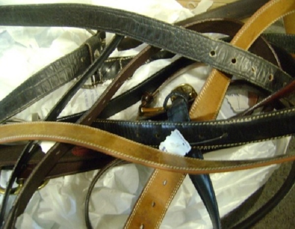 Если у тебя есть много ремней, которые ты уже не носишь, можно реанимировать журнальный столик своими руками, когда у него разбилось стекло или повредилась столешница. Достаточно просто плотно обмотать ремнем верхнюю часть стола. Получается весьма симпатично.