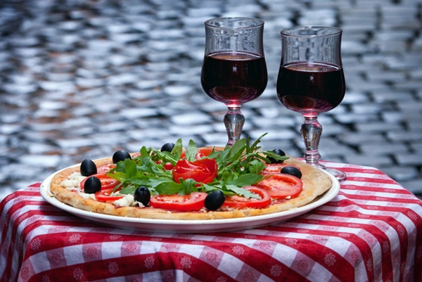 Красное вино прекрасно подходит к мясным блюдам (баранина, телятина, домашняя птица, дичь), овощным закускам, грибам. Лучшее сочетание с вином (не только с красным) — это сыр. Кстати, вино и сыр считаются сильными афродизиаками. Неплохо сочетается с вином горький шоколад. А вот что категорически противопоказано подавать к вину, так это соленые и квашеные продукты и рыбные консервы.