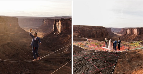 Райан Дженкс и Кимберли Веглин связали узы брака над пустыней возле Моава, штат Юта, где они встретились и полюбили друг друга. «Они решили пожениться именно здесь», — писали фотографы в их Инстаграмме.