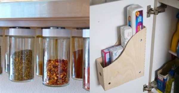 17. От супов до пудинга, эти маленькие пакеты могут быть чрезвычайно полезны, когда мы готовим еду. Следующая идея так же практична, как вы можете повесить пакеты на импровизированном мини-карнизе.