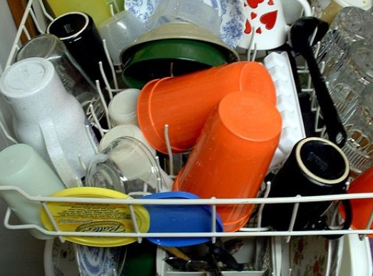 Скорее наоборот: чаши, тарелки и сковородки, небрежно уложенные в посудомоечную машину, или столовые приборы, укрытые вместе, предотвращают свободный поток воды для полоскания. Грязная вода собирается в опрокинутых чашах, картофельное пюре застряет между десертными ложками.