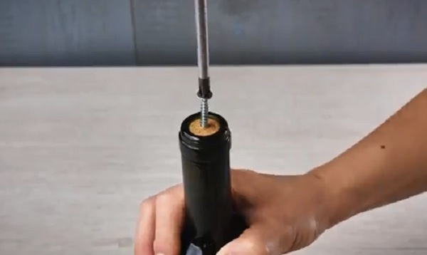 2. Для этого метода открытия бутылки вина вам понадобится длинный винт, отвертка и вилка. Во-первых, вам нужно ввернуть винт в пробку с помощью отвертки. Затем просто используйте вилку, чтобы вытащить винт. Вуаля!