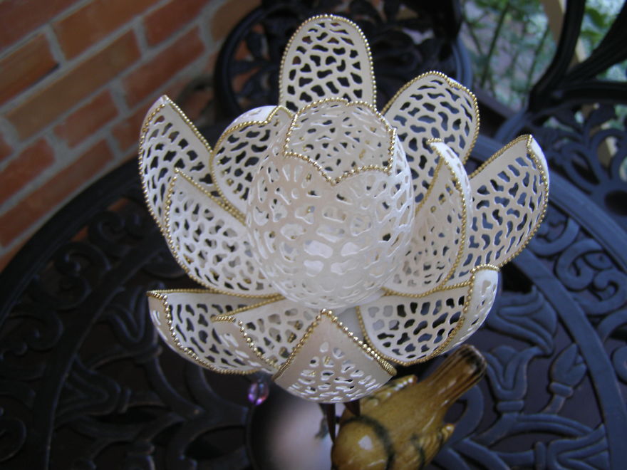 Прекрасная резьба по яичной скорлупе, очень тонкая и аккуратная!
